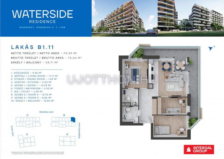 4 szobás 73 m2-es Lakás Waterside Residence - Budapest XIII. kerület, Vizafogó, Danubius u. 7