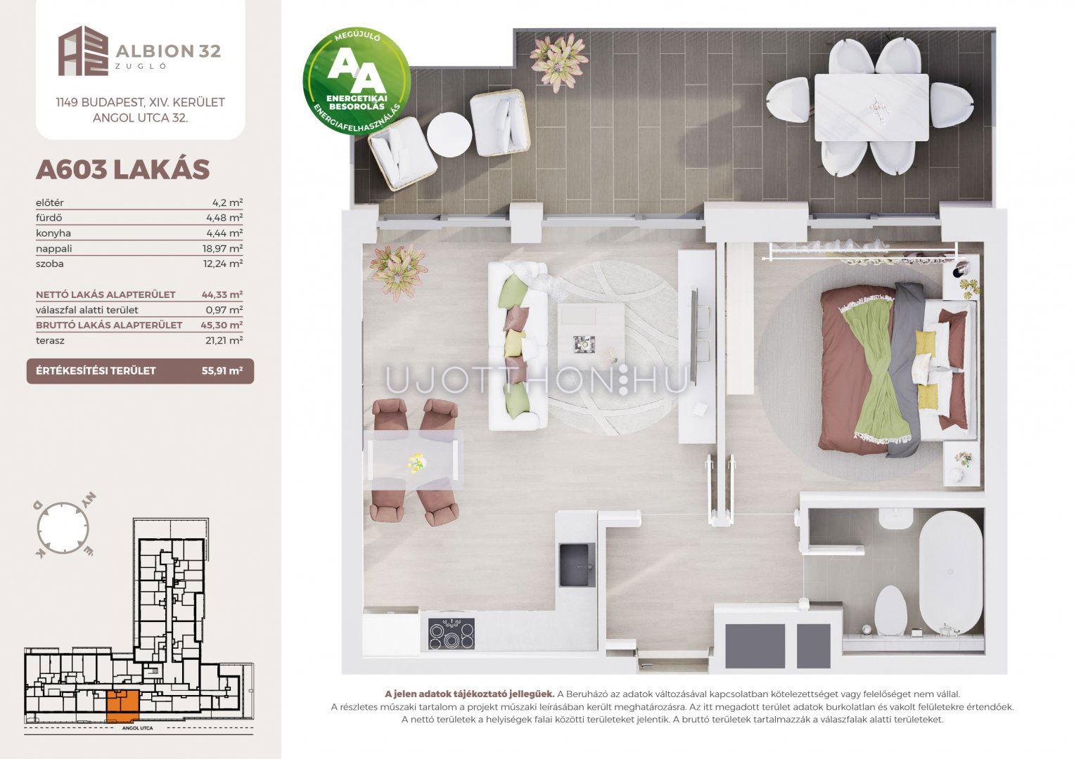 2 szobás 45 m2-es Lakás Albion 32 - Budapest XIV. kerület, Angol u. 32.