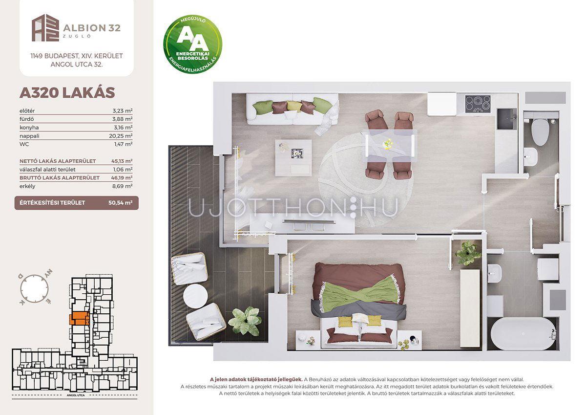 2 szobás 46 m2-es Lakás Albion 32 - Budapest XIV. kerület, Angol u. 32.