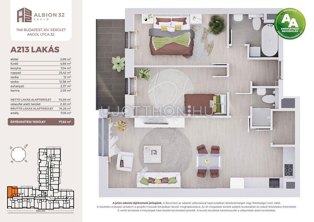 3 szobás 74 m2-es Lakás Albion 32 - Budapest XIV. kerület, Angol u. 32.