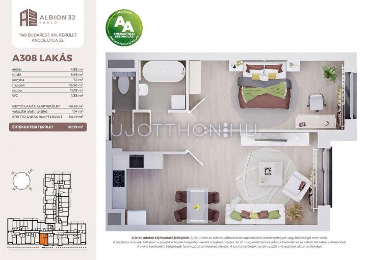2 szobás 51 m2-es Lakás Albion 32 - Budapest XIV. kerület, Angol u. 32.