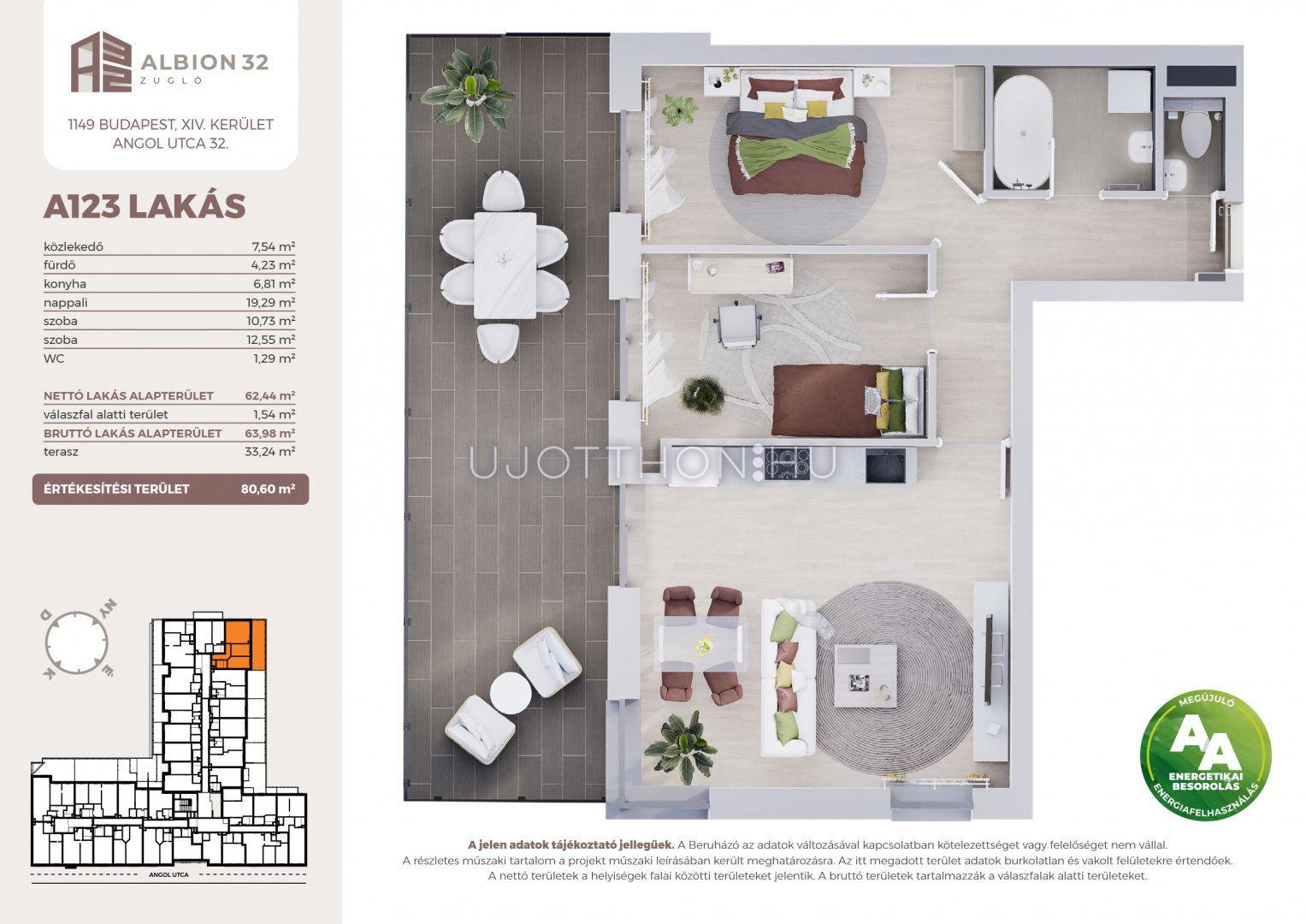 3 szobás 64 m2-es Lakás Albion 32 - Budapest XIV. kerület, Angol u. 32.