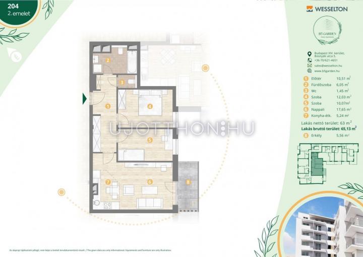 3 szobás 65 m2-es Lakás B5 Garden Residence - Budapest XIV. kerület, Kiszugló, Bosnyák Utca 5