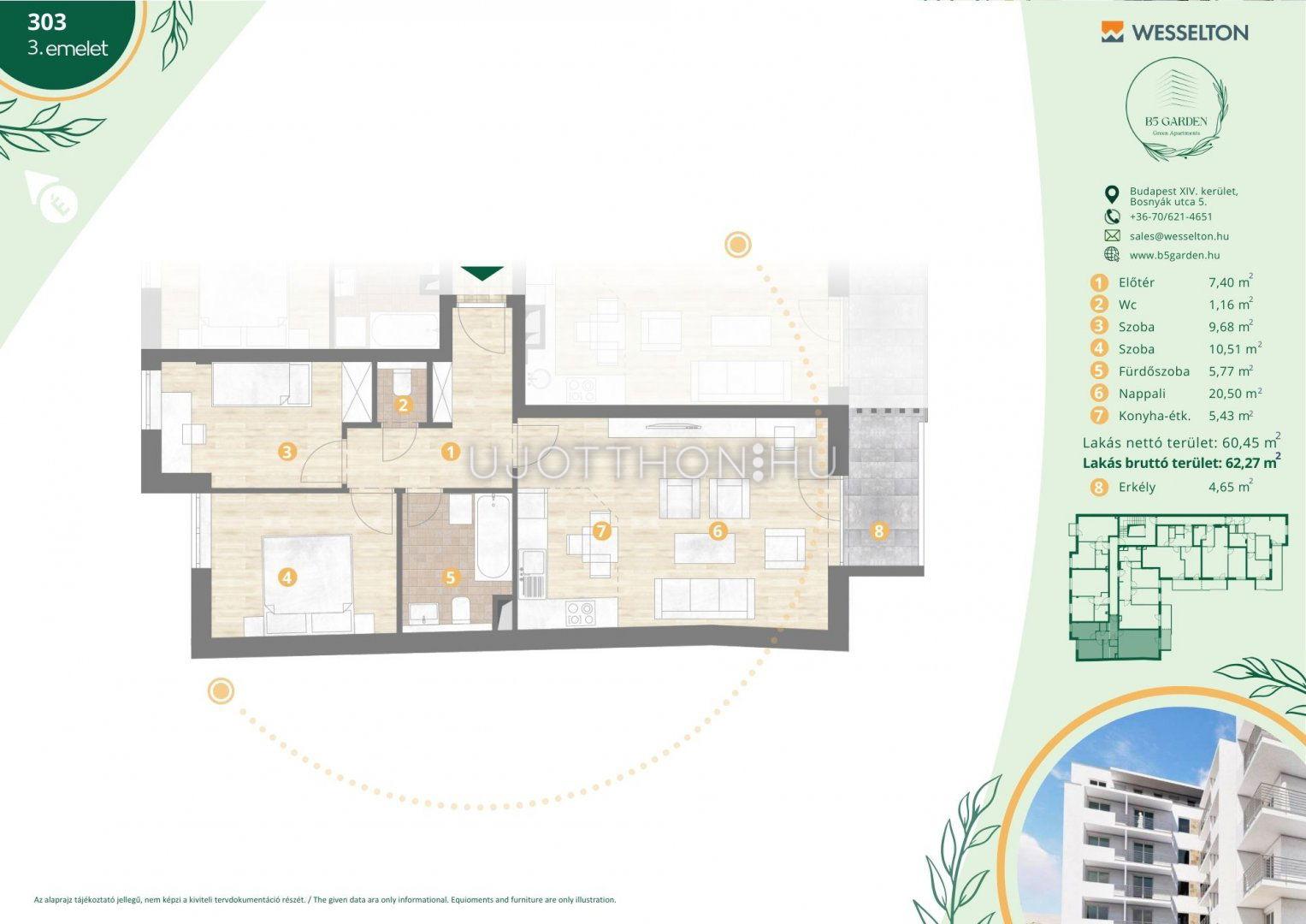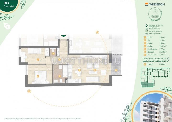3 szobás 62 m2-es Lakás B5 Garden Residence - Budapest XIV. kerület, Kiszugló, Bosnyák Utca 5