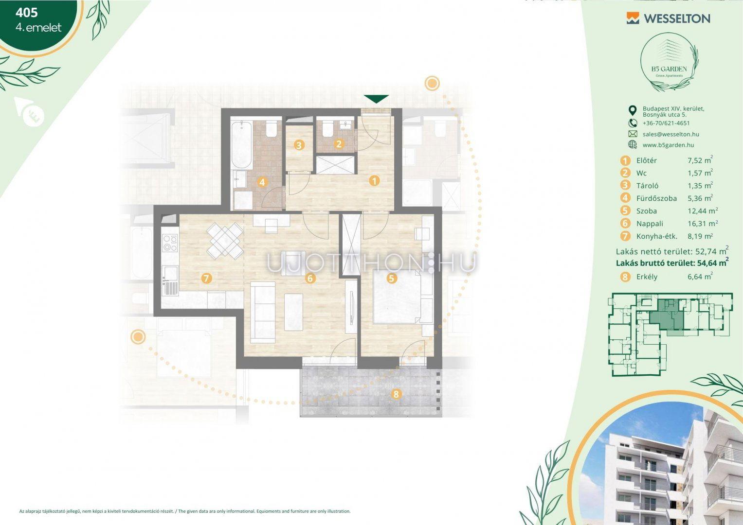 2 szobás 55 m2-es Lakás B5 Garden Residence - Budapest XIV. kerület, Kiszugló, Bosnyák Utca 5