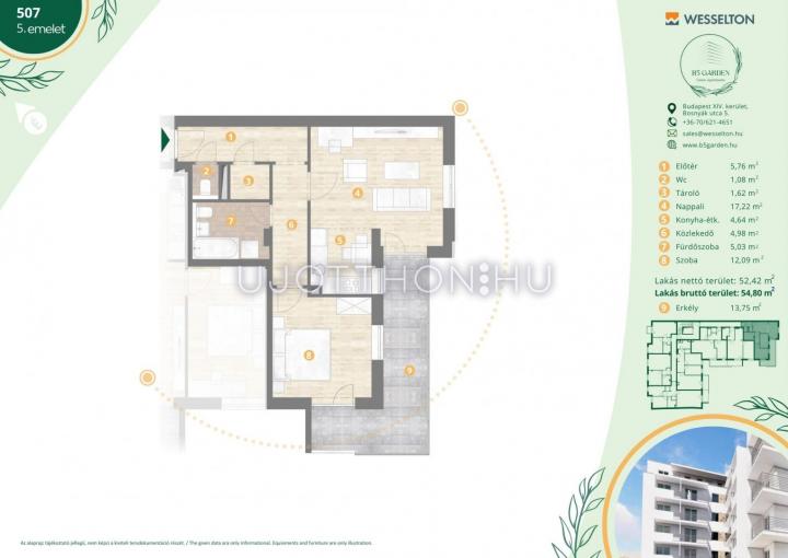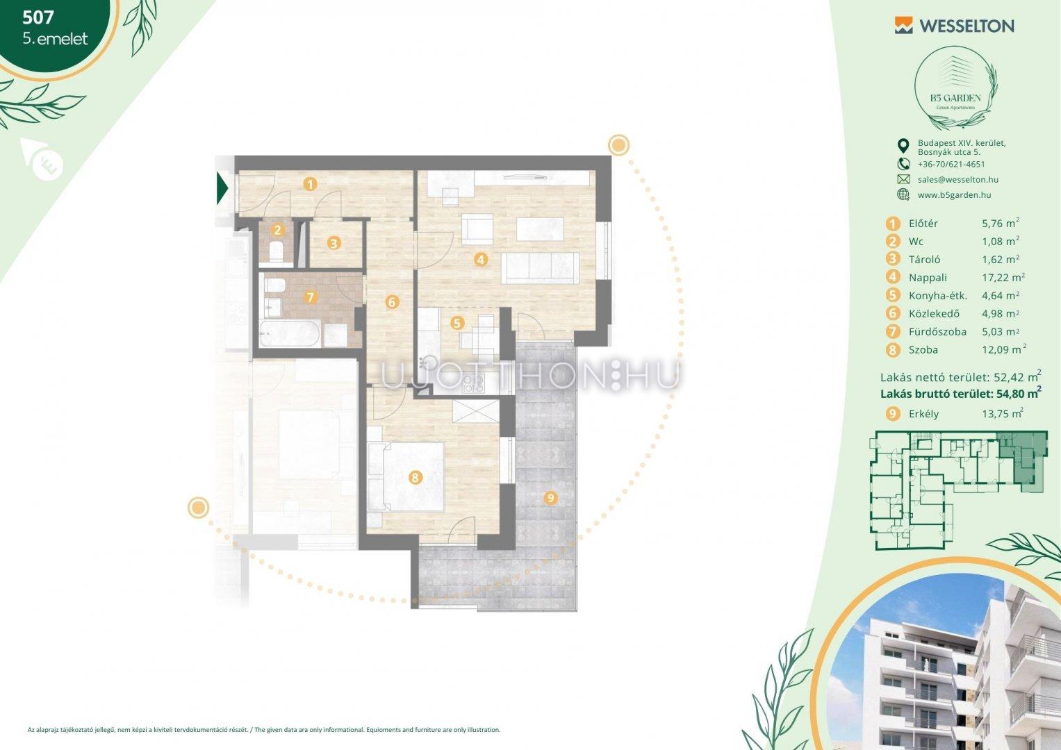 2 szobás 55 m2-es Lakás B5 Garden Residence - Budapest XIV. kerület, Kiszugló, Bosnyák Utca 5