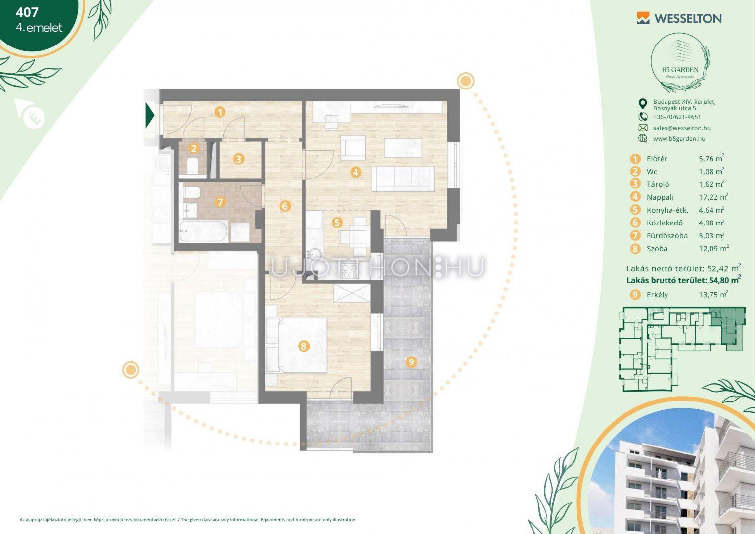 2 szobás 55 m2-es Lakás B5 Garden Residence - Budapest XIV. kerület, Kiszugló, Bosnyák Utca 5