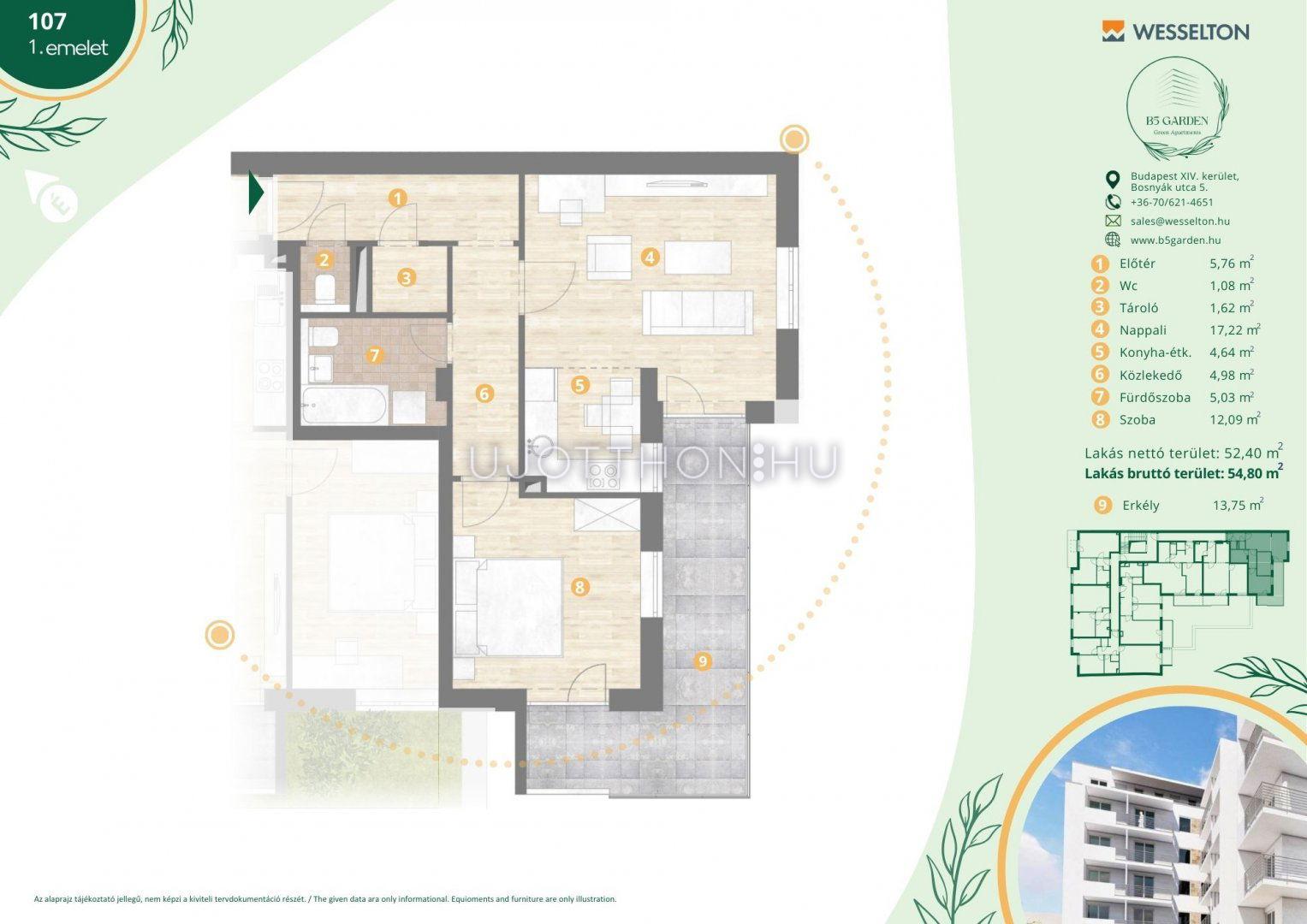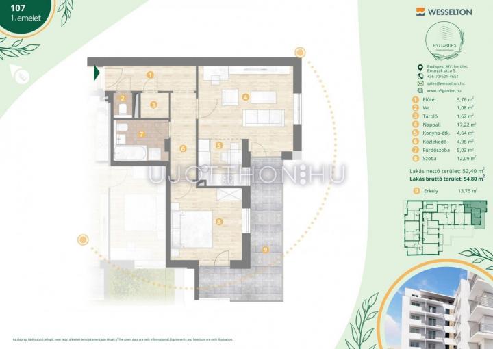 2 szobás 55 m2-es Lakás B5 Garden Residence - Budapest XIV. kerület, Kiszugló, Bosnyák Utca 5