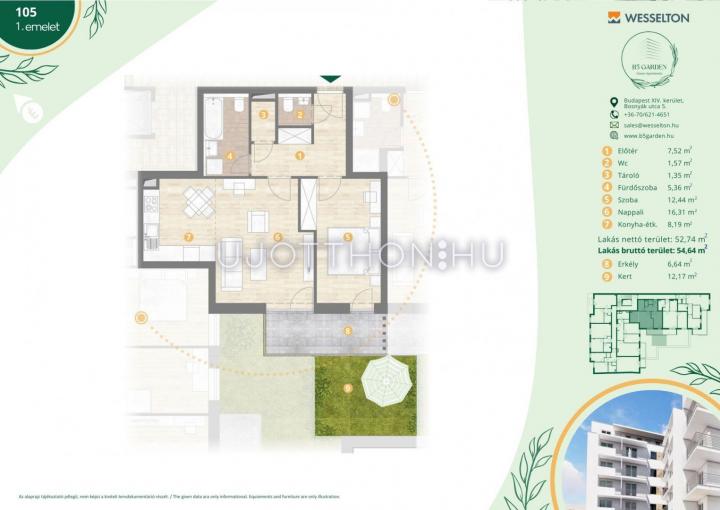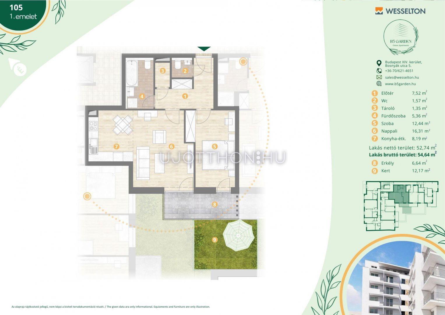 2 szobás 62 m2-es Lakás B5 Garden Residence - Budapest XIV. kerület, Kiszugló, Bosnyák Utca 5