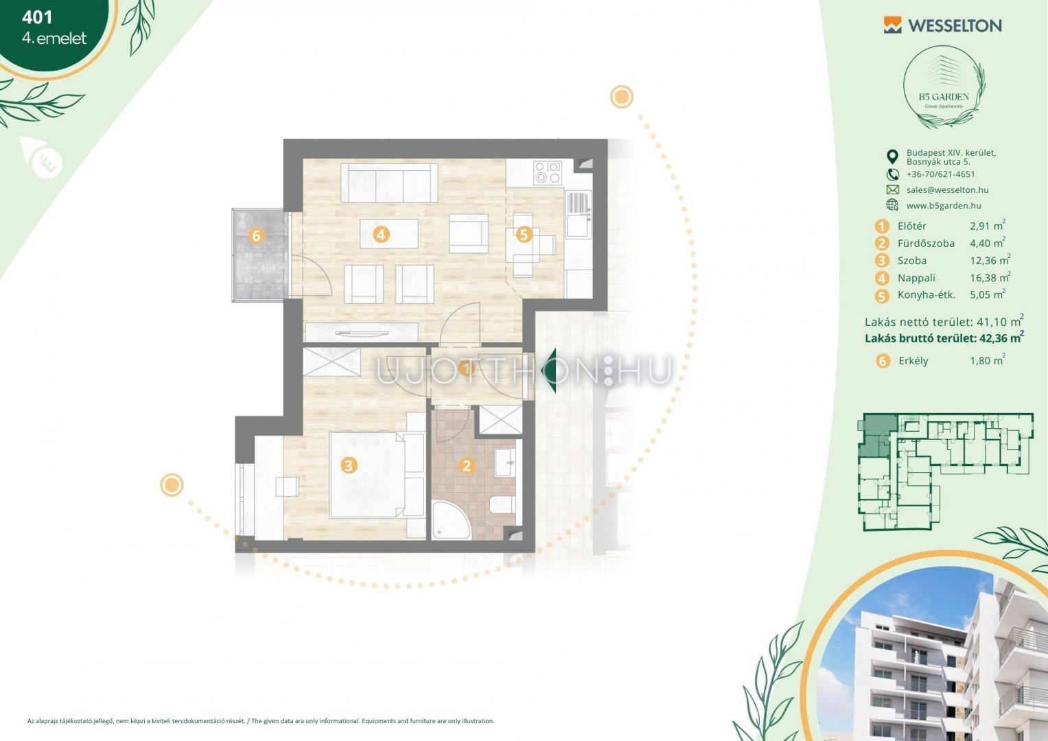 2 szobás 42 m2-es Lakás B5 Garden Residence - Budapest XIV. kerület, Kiszugló, Bosnyák Utca 5