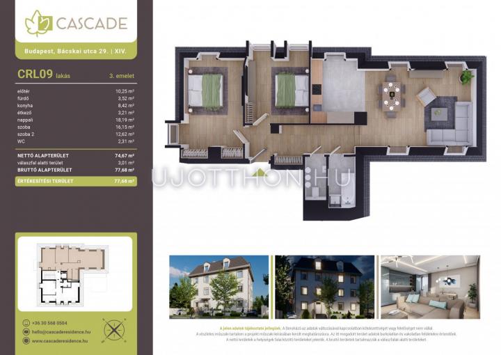 3 szobás 77 m2-es Lakás Cascade Residence - Budapest XIV. kerület, Herminamező, Bácskai utca 29/b