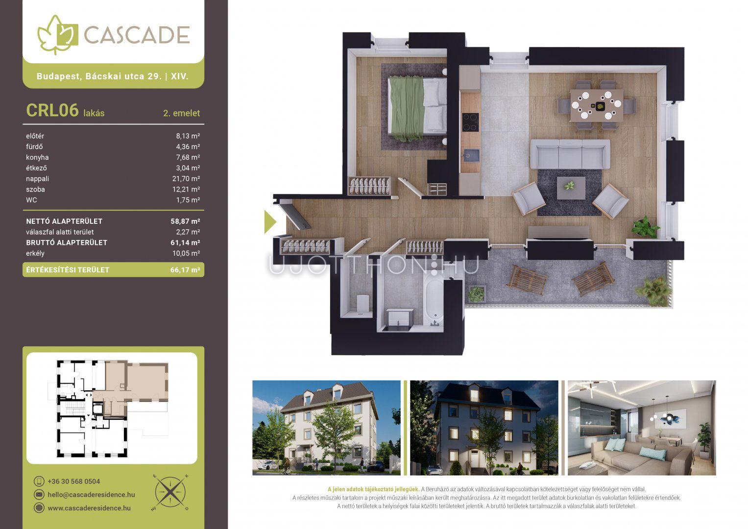 2 szobás 59 m2-es Lakás Cascade Residence - Budapest XIV. kerület, Herminamező, Bácskai utca 29/b