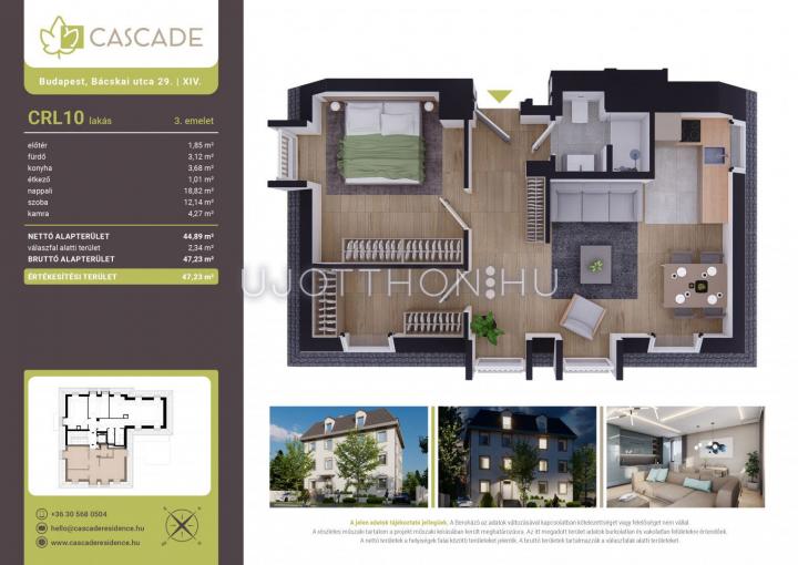 2 szobás 45 m2-es Lakás Cascade Residence - Budapest XIV. kerület, Herminamező, Bácskai utca 29/b