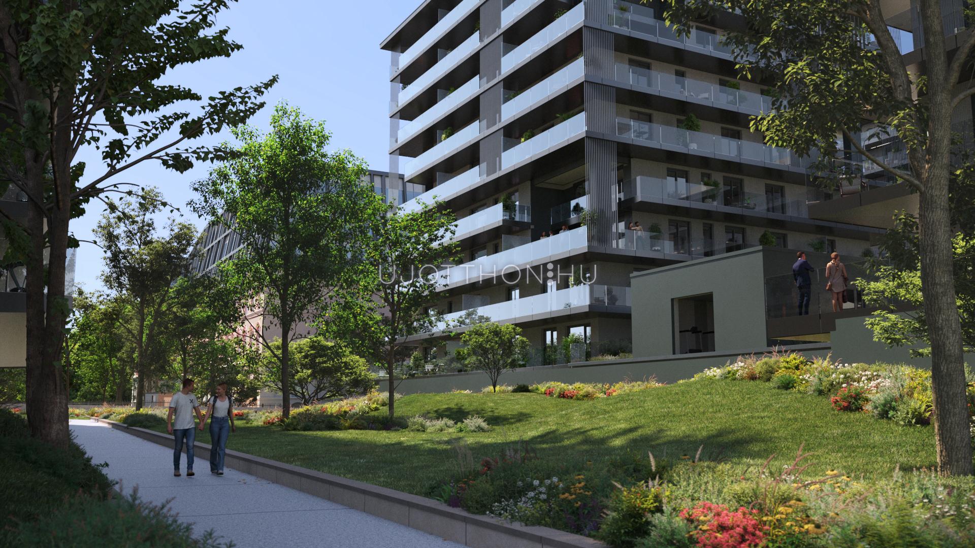A modern belsőépítészeti megoldások és a gépesített konyhabútorok mellett többek között okosotthonba integrált árnyékolórendszer, szalagparketta vagy éppen alumínium nyílászárók adnak extra műszaki tartalmat. A lakásokhoz emellett gépkocsi beállók és tárolók vásárlására is van lehetőség.