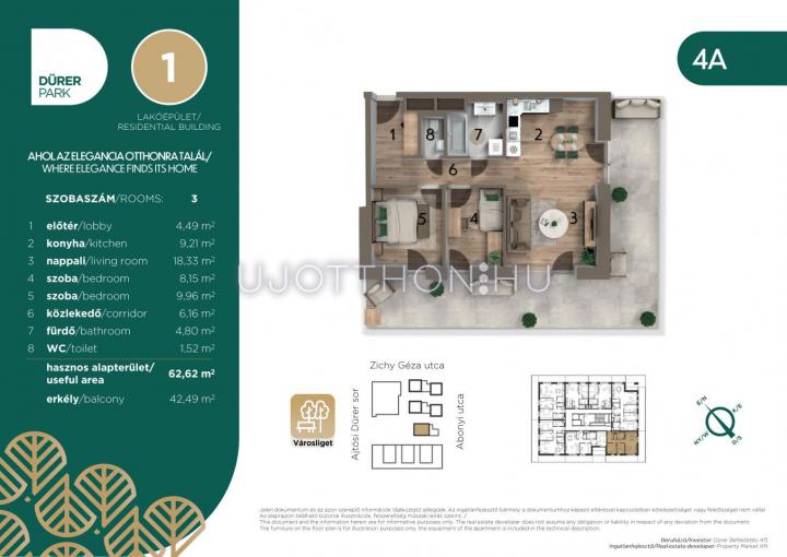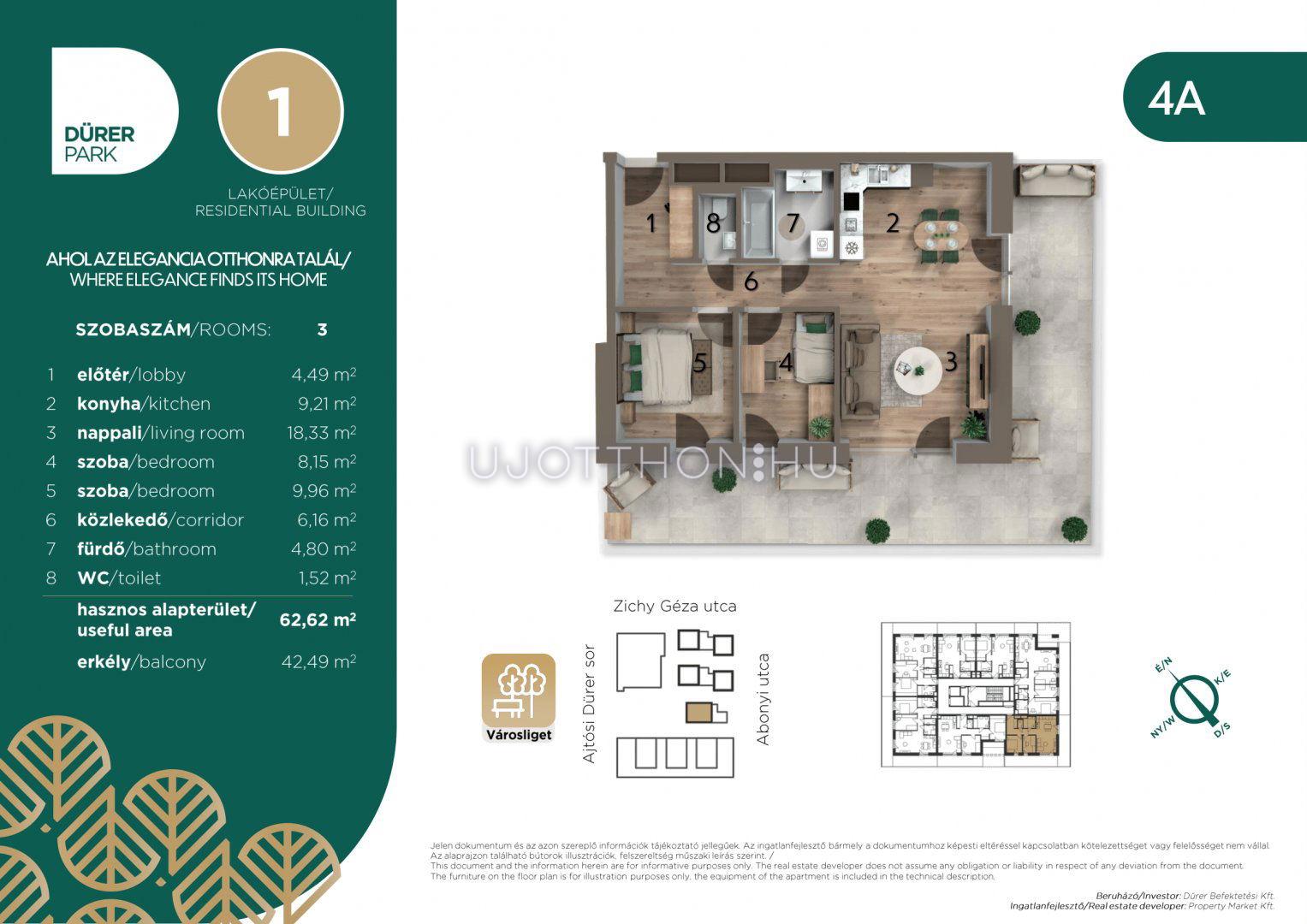 3 szobás 63 m2-es Lakás Dürer Park - Budapest XIV. kerület, Istvánmező, Ajtósi Dürer sor 19-21