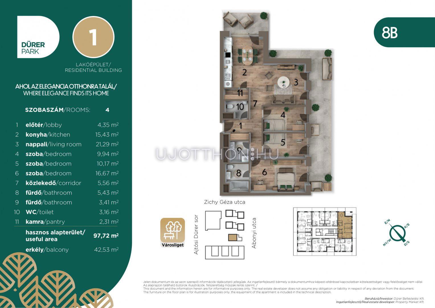 4 szobás 98 m2-es Lakás Dürer Park - Budapest XIV. kerület, Istvánmező, Ajtósi Dürer sor 19-21