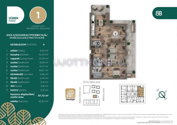 A Dürer Park lakóingatlanjai minden részletükben a minőséget képviselik; mind az anyagválasztásban, mind a modern technikai megoldásokban a maximumot nyújtva.