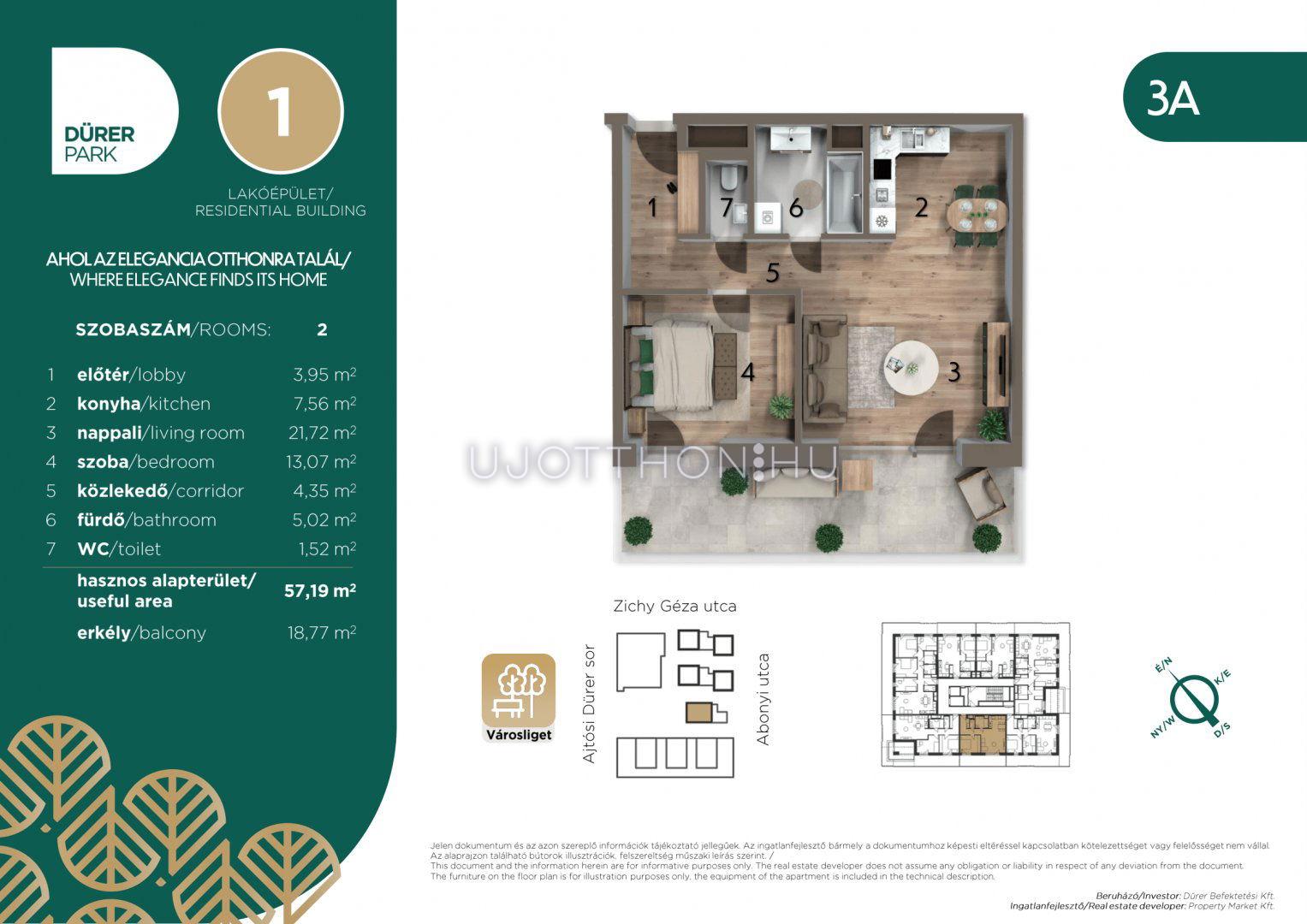 2 szobás 57 m2-es Lakás Dürer Park - Budapest XIV. kerület, Istvánmező, Ajtósi Dürer sor 19-21