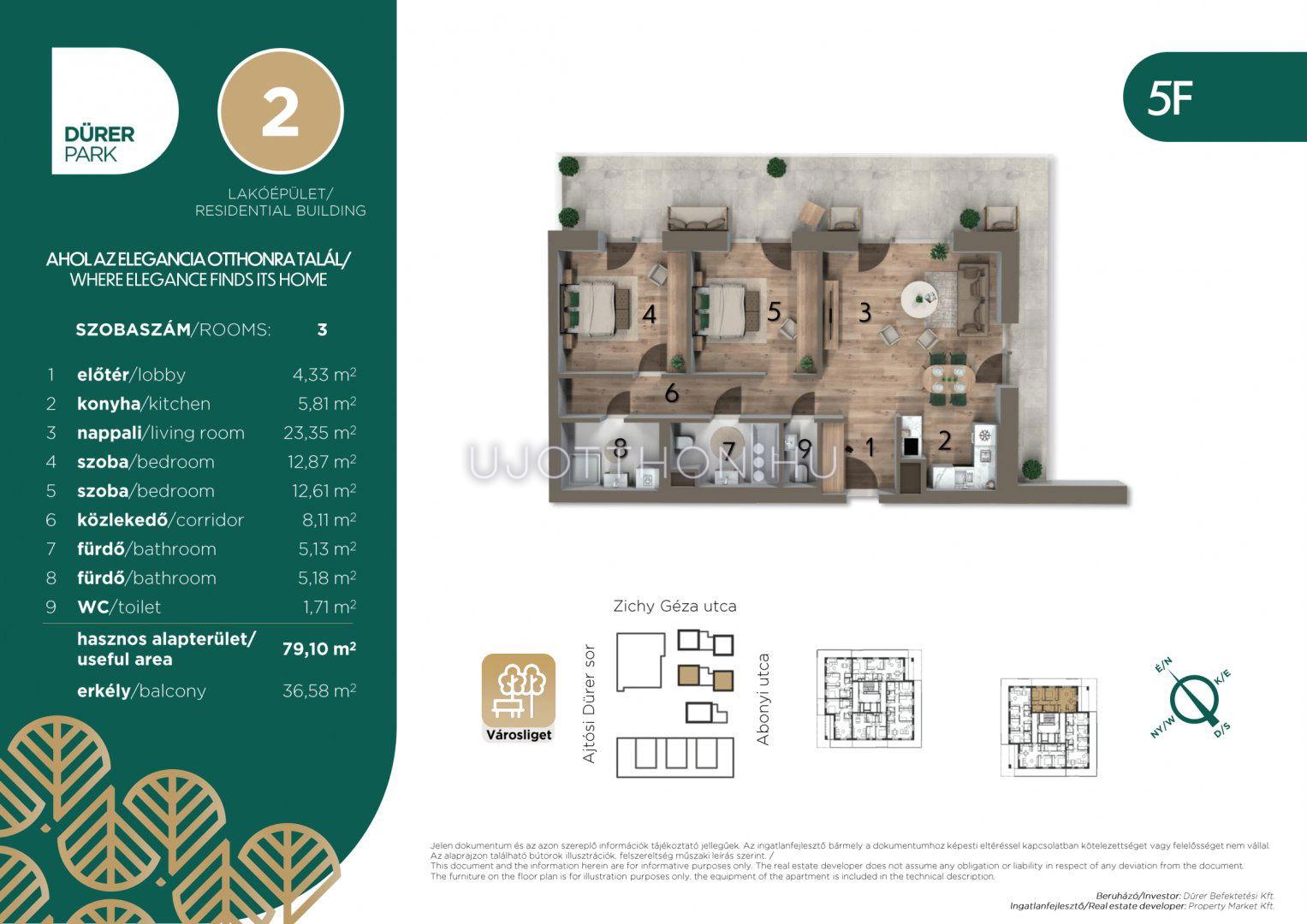 3 szobás 79 m2-es Lakás Dürer Park - Budapest XIV. kerület, Istvánmező, Ajtósi Dürer sor 19-21