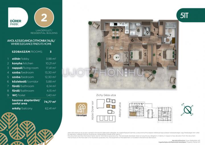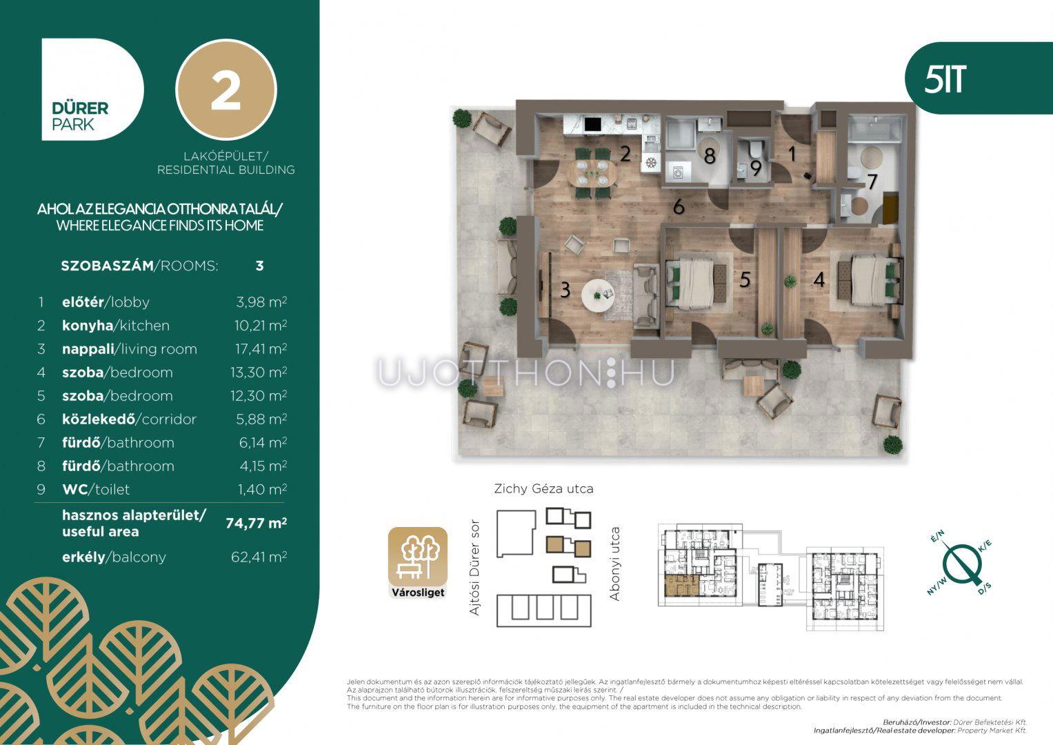 3 szobás 75 m2-es Lakás Dürer Park - Budapest XIV. kerület, Istvánmező, Ajtósi Dürer sor 19-21