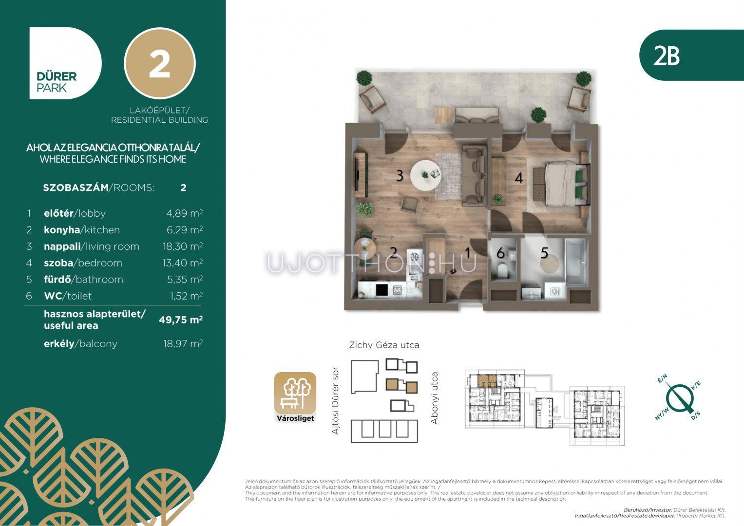 2 szobás 50 m2-es Lakás Dürer Park - Budapest XIV. kerület, Istvánmező, Ajtósi Dürer sor 19-21