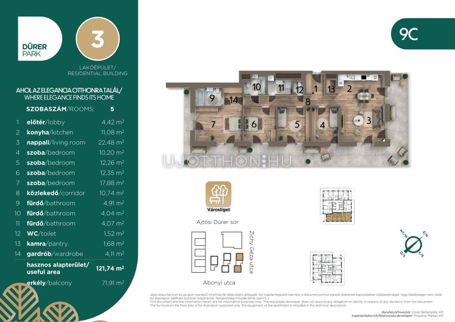 5 szobás 122 m2-es Lakás Dürer Park - Budapest XIV. kerület, Istvánmező, Ajtósi Dürer sor 19-21