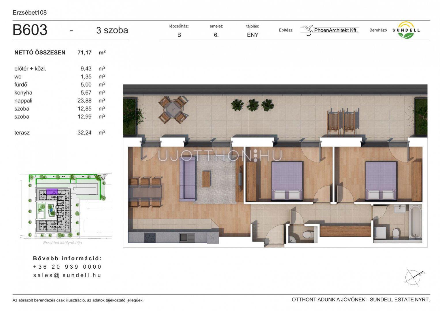 Modern otthonok Zugló szívében! Az Erzsébet 108 lakópark korszerű építészeti megoldásokkal, barátságos megjelenéssel és világos életterekkel kínál lakásokat. Környezetbarát fűtési és hűtési rendszer, egyedi hőmennyiség mérők, kertkapcsolatos földszinti lakások, mélygarázs és tárolók állnak rendelkezésre.