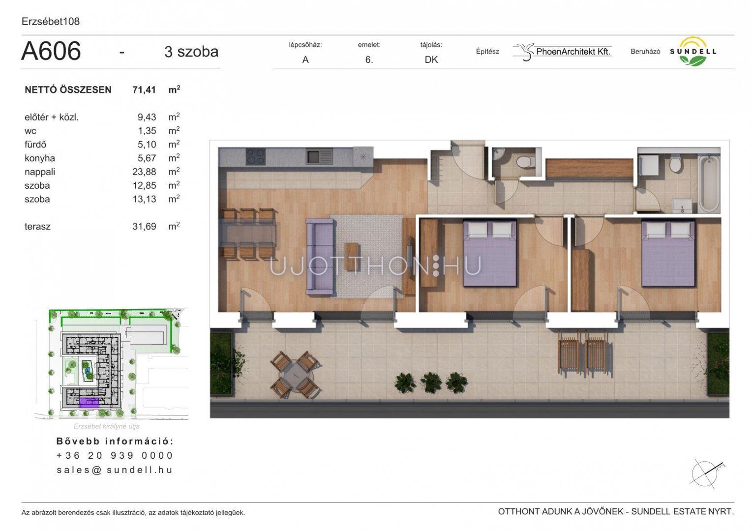 Modern otthonok Zugló szívében! Az Erzsébet 108 lakópark korszerű építészeti megoldásokkal, barátságos megjelenéssel és világos életterekkel kínál lakásokat. Környezetbarát fűtési és hűtési rendszer, egyedi hőmennyiség mérők, kertkapcsolatos földszinti lakások, mélygarázs és tárolók állnak rendelkezésre.