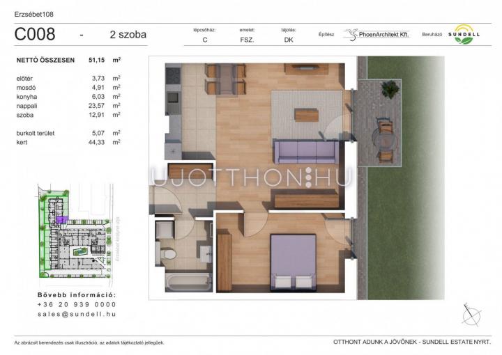 Modern otthonok Zugló szívében! Az Erzsébet 108 lakópark korszerű építészeti megoldásokkal, barátságos megjelenéssel és világos életterekkel kínál lakásokat. Környezetbarát fűtési és hűtési rendszer, egyedi hőmennyiség mérők, kertkapcsolatos földszinti lakások, mélygarázs és tárolók állnak rendelkezésre.