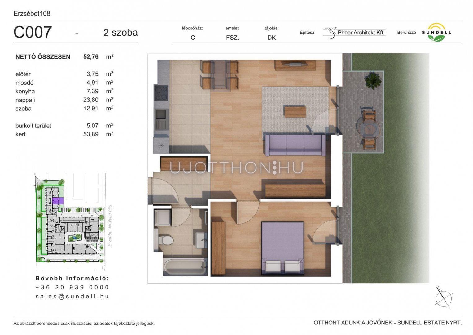 Modern otthonok Zugló szívében! Az Erzsébet 108 lakópark korszerű építészeti megoldásokkal, barátságos megjelenéssel és világos életterekkel kínál lakásokat. Környezetbarát fűtési és hűtési rendszer, egyedi hőmennyiség mérők, kertkapcsolatos földszinti lakások, mélygarázs és tárolók állnak rendelkezésre.