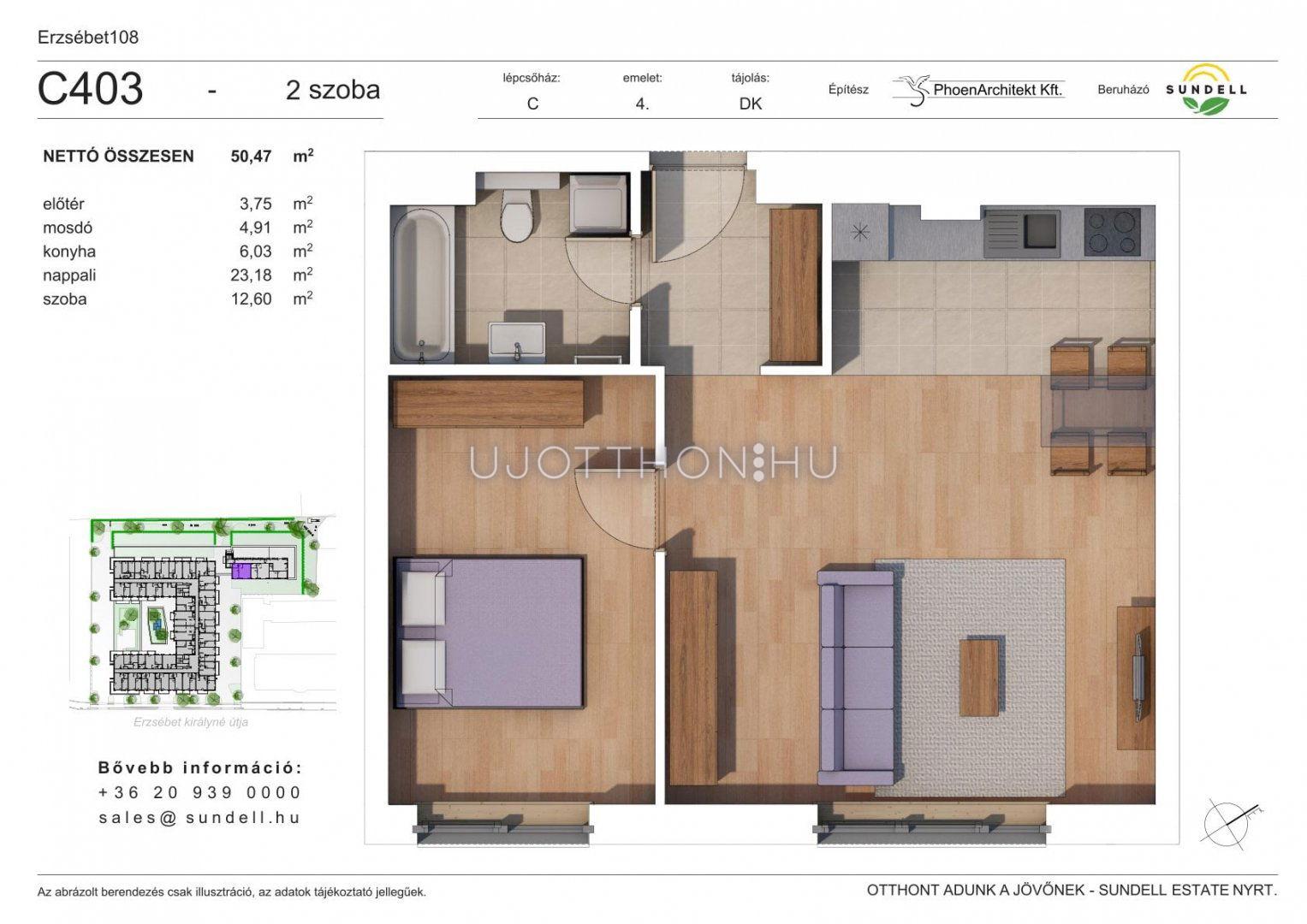 Modern otthonok Zugló szívében! Az Erzsébet 108 lakópark korszerű építészeti megoldásokkal, barátságos megjelenéssel és világos életterekkel kínál lakásokat. Környezetbarát fűtési és hűtési rendszer, egyedi hőmennyiség mérők, kertkapcsolatos földszinti lakások, mélygarázs és tárolók állnak rendelkezésre.