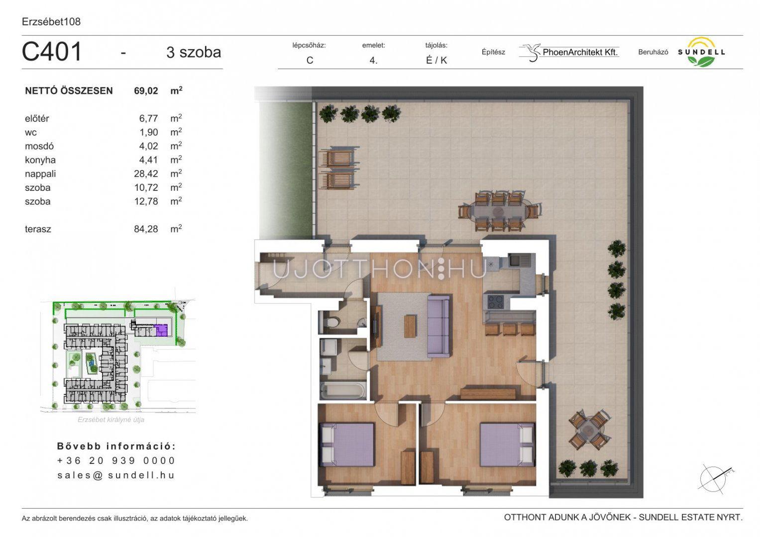 3 szobás 69 m2-es Lakás Erzsébet108 - Budapest XIV. kerület, Alsórákos, Erzsébet királyné útja 108-110