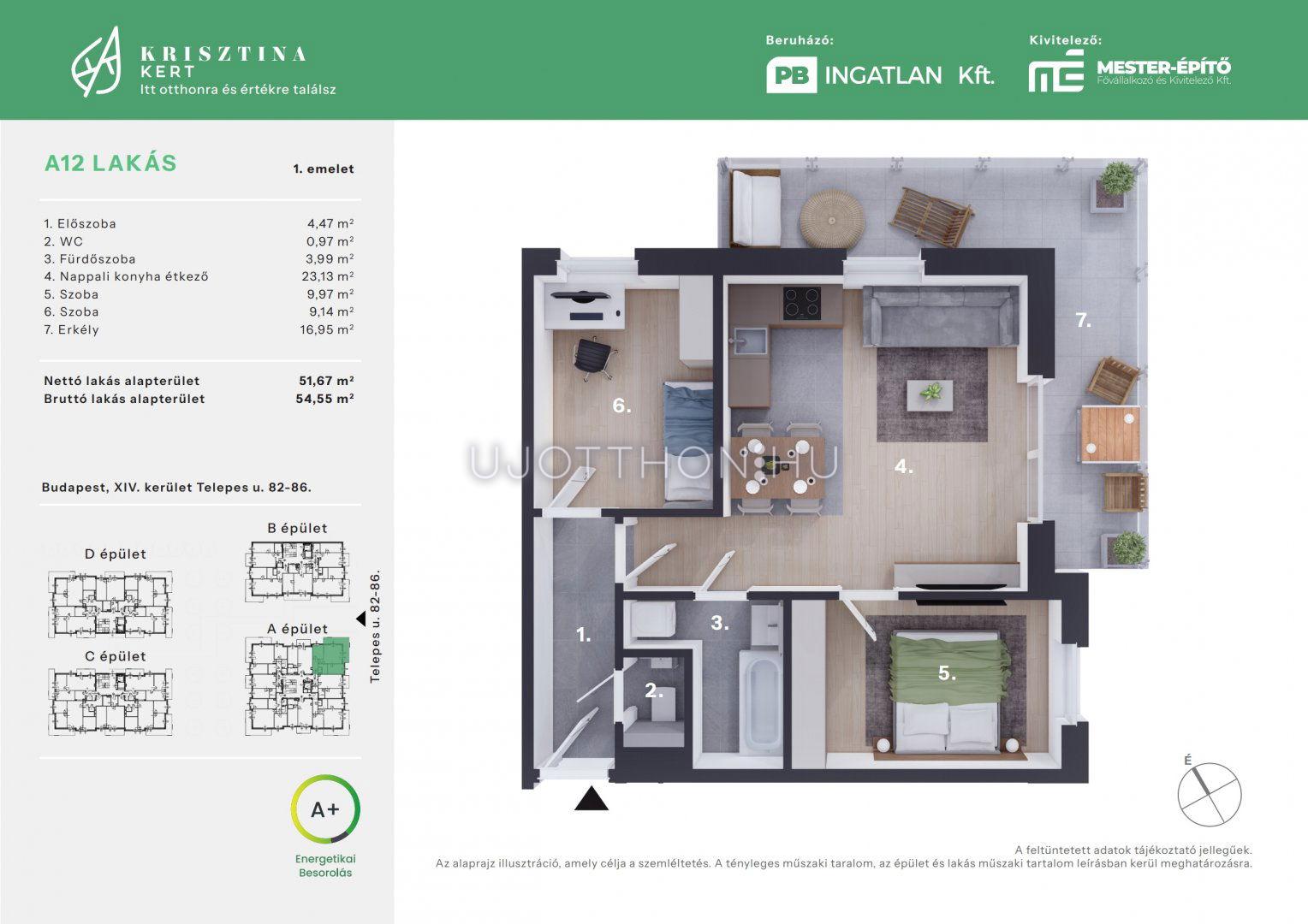 1 + 2 félszobás 52 m2-es Lakás Krisztina Kert - Budapest XIV. kerület, Alsórákos, Telepes utca 82-86