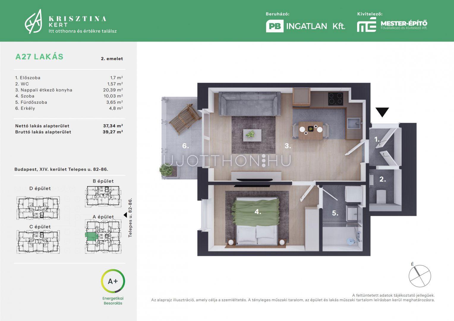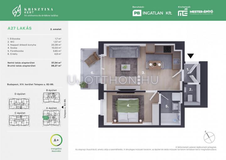 1 + 1 félszobás 37 m2-es Lakás Krisztina Kert - Budapest XIV. kerület, Alsórákos, Telepes utca 82-86