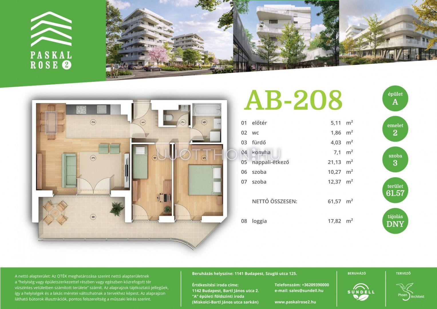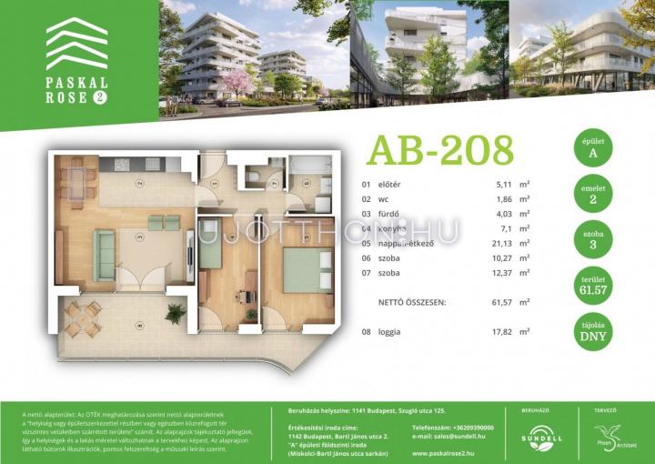 3 szobás 62 m2-es Lakás Paskal Rose2 - Budapest XIV. kerület, Alsórákos, Bartl János utca 46149