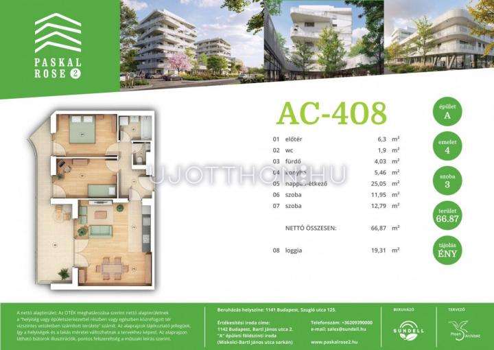 3 szobás 67 m2-es Lakás Paskal Rose2 - Budapest XIV. kerület, Alsórákos, Bartl János utca 46149