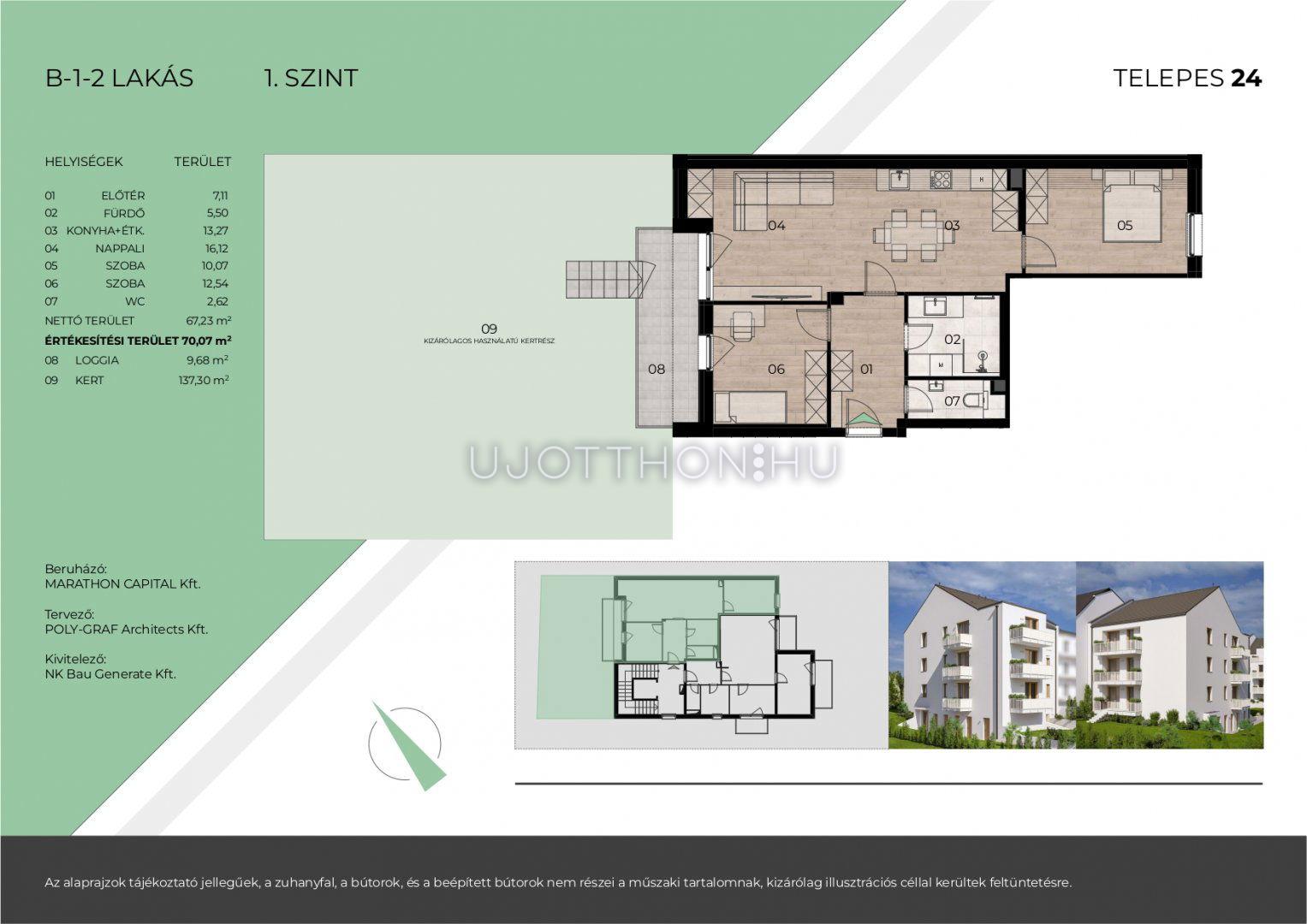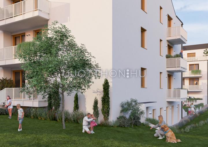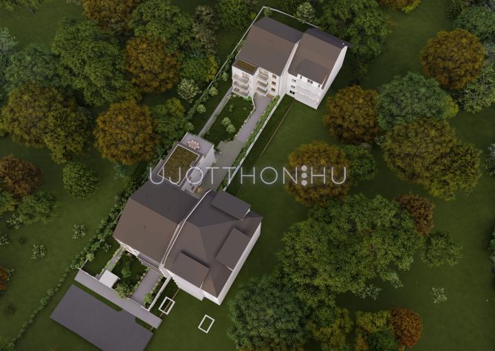 - Egyedi lehetőségek: az első emeleti hátsókerti lakáshoz 137 m²-es kizárólagos kertkapcsolat, míg a legfelső emeleti lakásokhoz 10-15 m²-es padlástér használati jog tartozik.