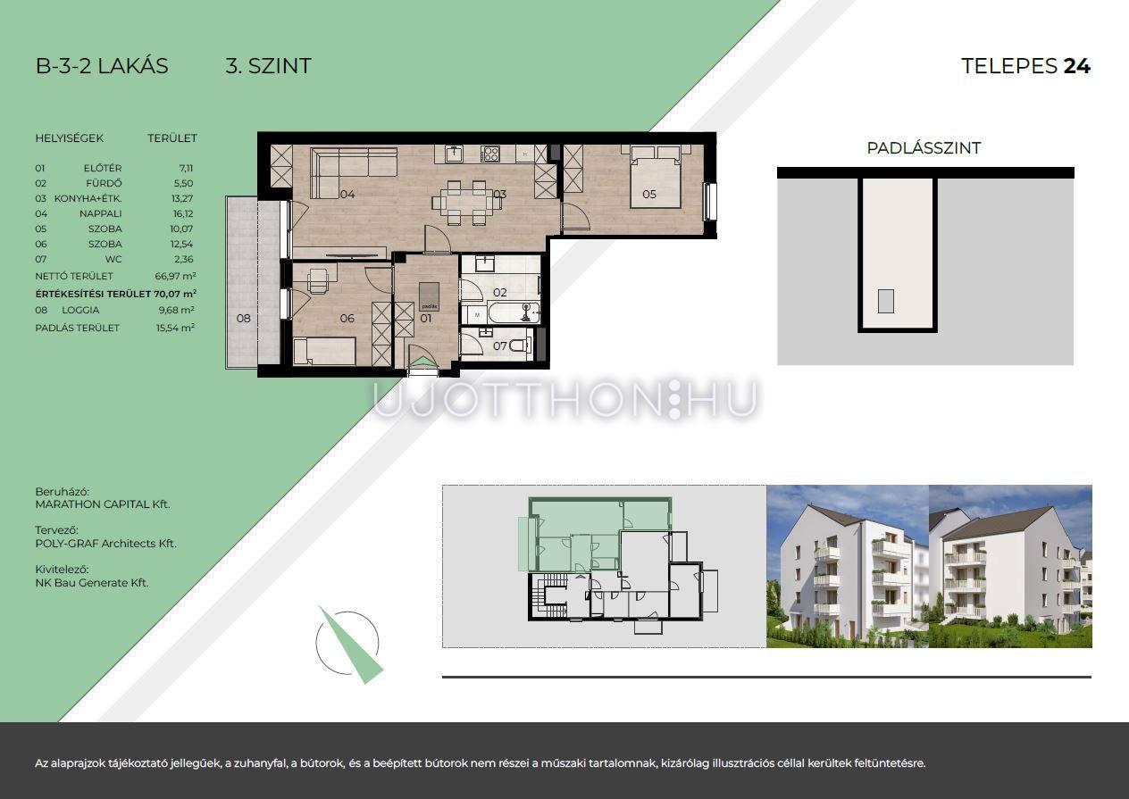 - Egyedi lehetőségek: az első emeleti hátsókerti lakáshoz 137 m²-es kizárólagos kertkapcsolat, míg a legfelső emeleti lakásokhoz 10-15 m²-es padlástér használati jog tartozik.