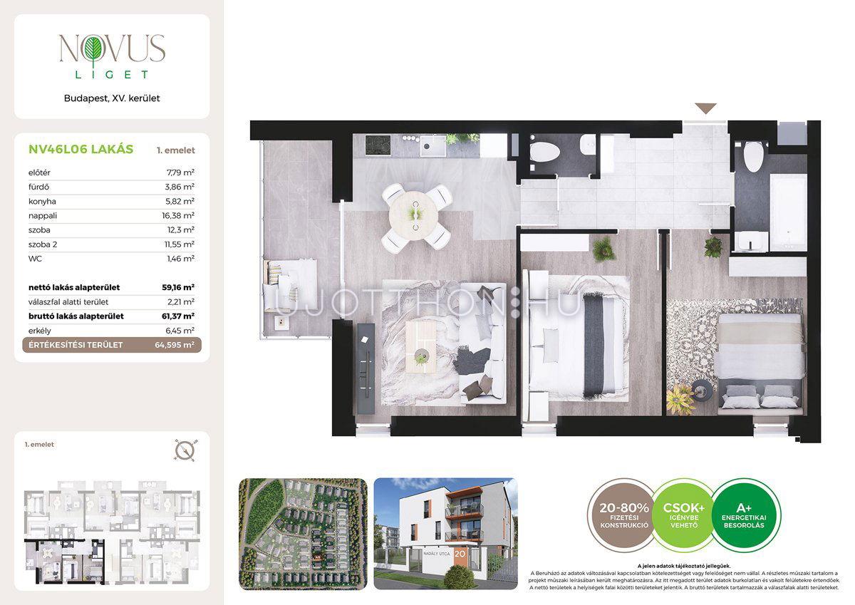 3 szobás 59 m2-es Lakás Novus Liget - Budapest XV. kerület, Rákospalota, Kékszilva utca 2