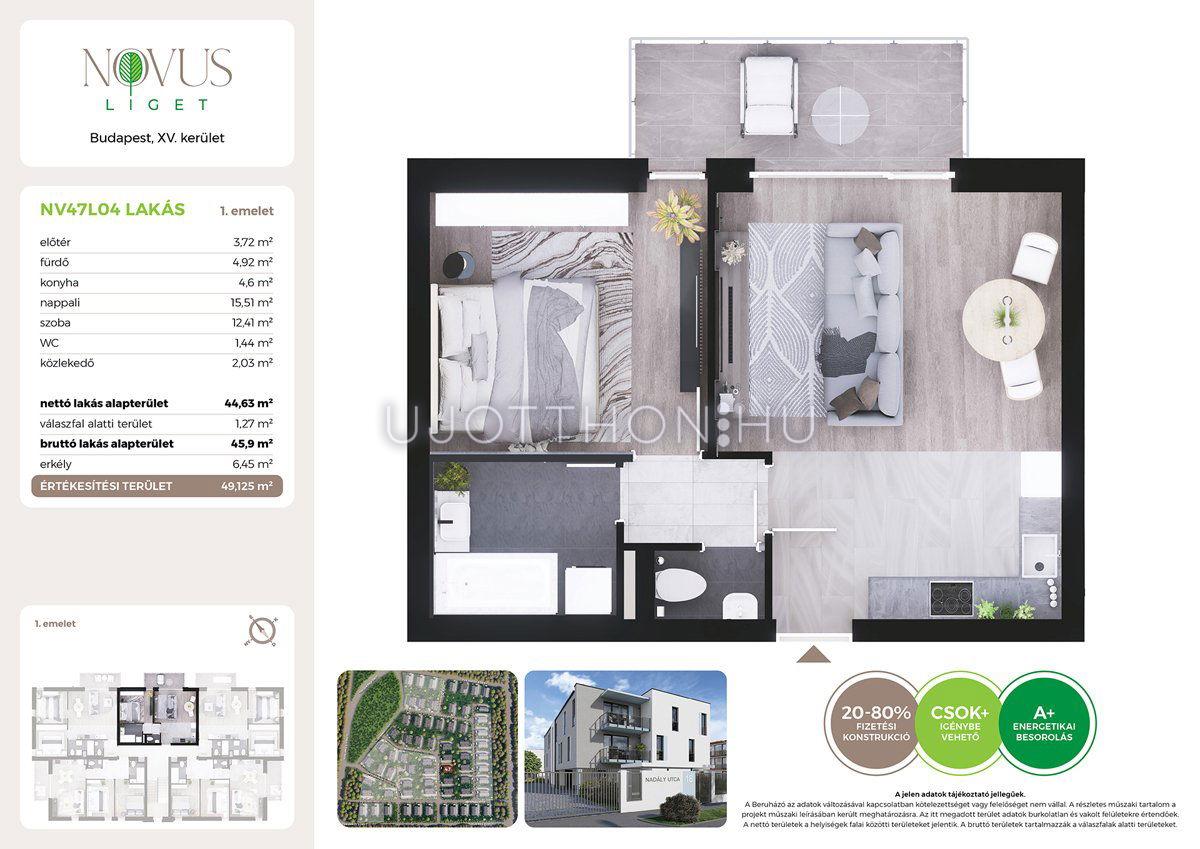 2 szobás 45 m2-es Lakás Novus Liget - Budapest XV. kerület, Rákospalota, Kékszilva utca 2