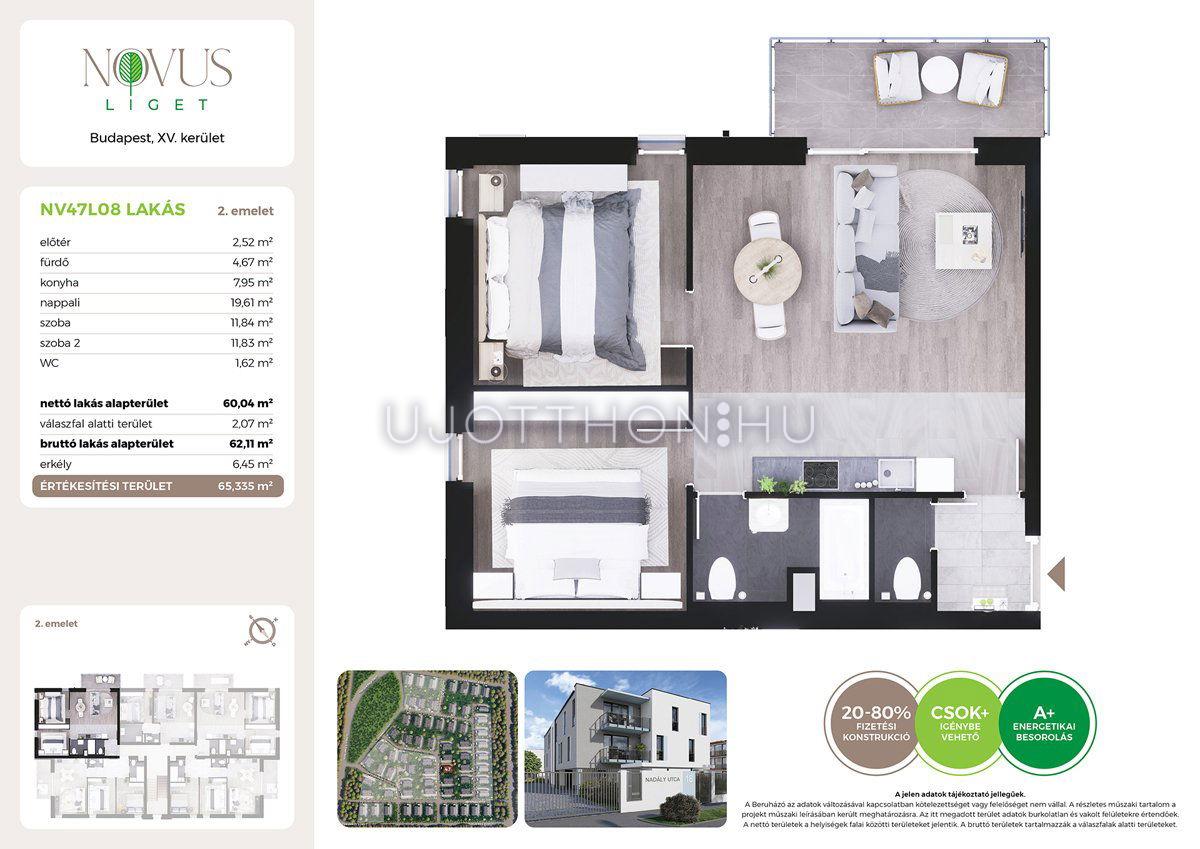3 szobás 60 m2-es Lakás Novus Liget - Budapest XV. kerület, Rákospalota, Kékszilva utca 2