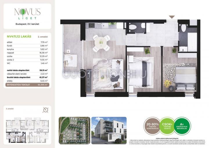 3 szobás 59 m2-es Lakás Novus Liget - Budapest XV. kerület, Rákospalota, Kékszilva utca 2