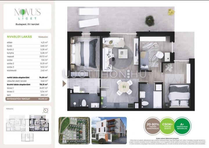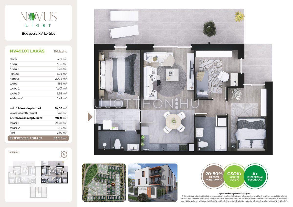 A Novus Liget Budapest 15. kerületének legújabb, modern lakóparkja, amelyet a fenntarthatóság és az élhető környezet jegyében álmodtak meg. A lakóparkban 40 társasház épül, összesen több mint 400, 2, 3 és 4 szobás lakással, amelyek tágas belső tereikkel, kertkapcsolattal vagy terasszal kínálnak kényelmet és nyugalmat. Az A+ energetikai besorolású épületek hőszivattyús rendszerrel és korszerű szigeteléssel készülnek, biztosítva az alacsony fenntartási költségeket és a környezetbarát megoldásokat.