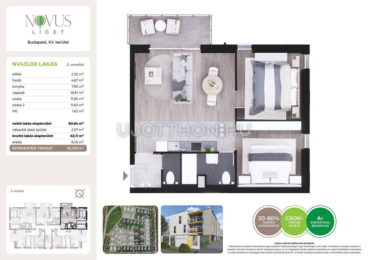 3 szobás 60 m2-es Lakás Novus Liget - Budapest XV. kerület, Rákospalota, Kékszilva utca 2