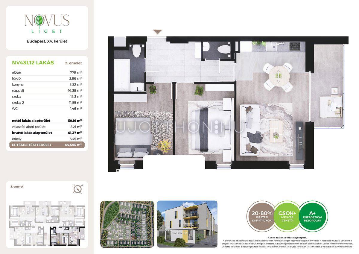3 szobás 59 m2-es Lakás Novus Liget - Budapest XV. kerület, Rákospalota, Kékszilva utca 2