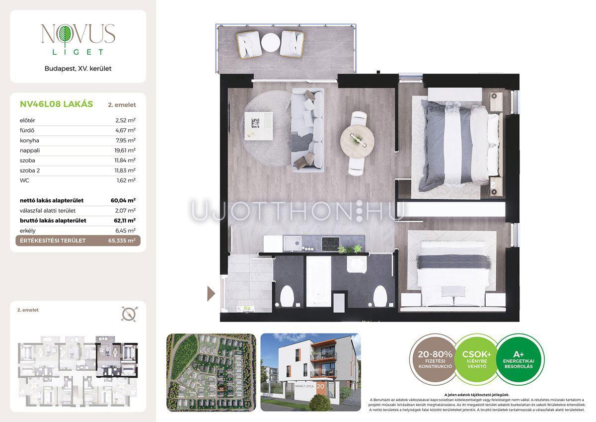 3 szobás 60 m2-es Lakás Novus Liget - Budapest XV. kerület, Rákospalota, Kékszilva utca 2