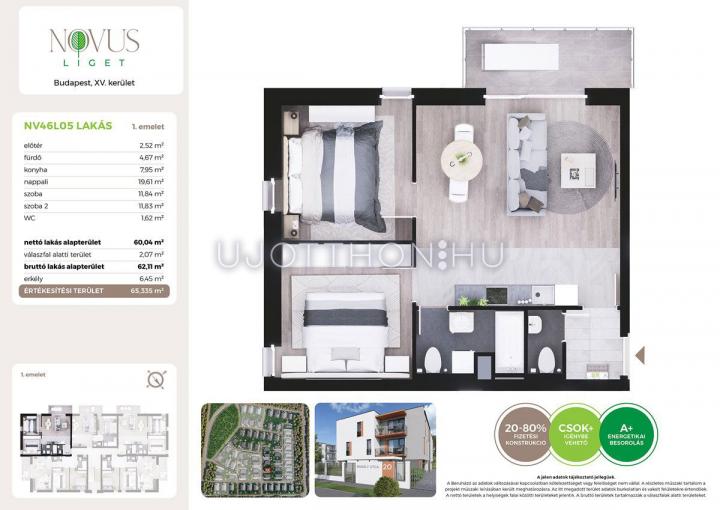 3 szobás 60 m2-es Lakás Novus Liget - Budapest XV. kerület, Rákospalota, Kékszilva utca 2