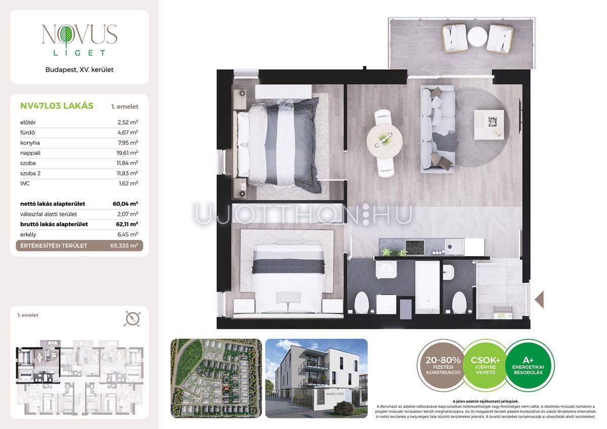 3 szobás 60 m2-es Lakás Novus Liget - Budapest XV. kerület, Rákospalota, Kékszilva utca 2