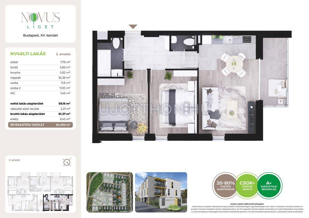 3 szobás 59 m2-es Lakás Novus Liget - Budapest XV. kerület, Rákospalota, Kékszilva utca 2