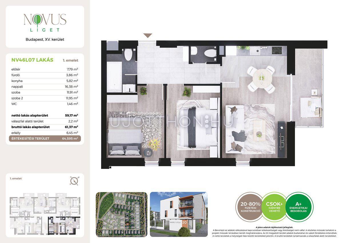 3 szobás 59 m2-es Lakás Novus Liget - Budapest XV. kerület, Rákospalota, Kékszilva utca 2